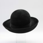 Bibi en feutre de lapin gris anthracite bordé d’un galon de dentelle.