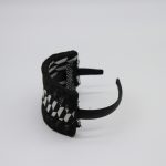 Bijoux de tête en plumet de coq noir, monté sur des pinces en métal facile à disposer dans sa coiffure, chignon bas, chignon haut, chute de boucles blondes.